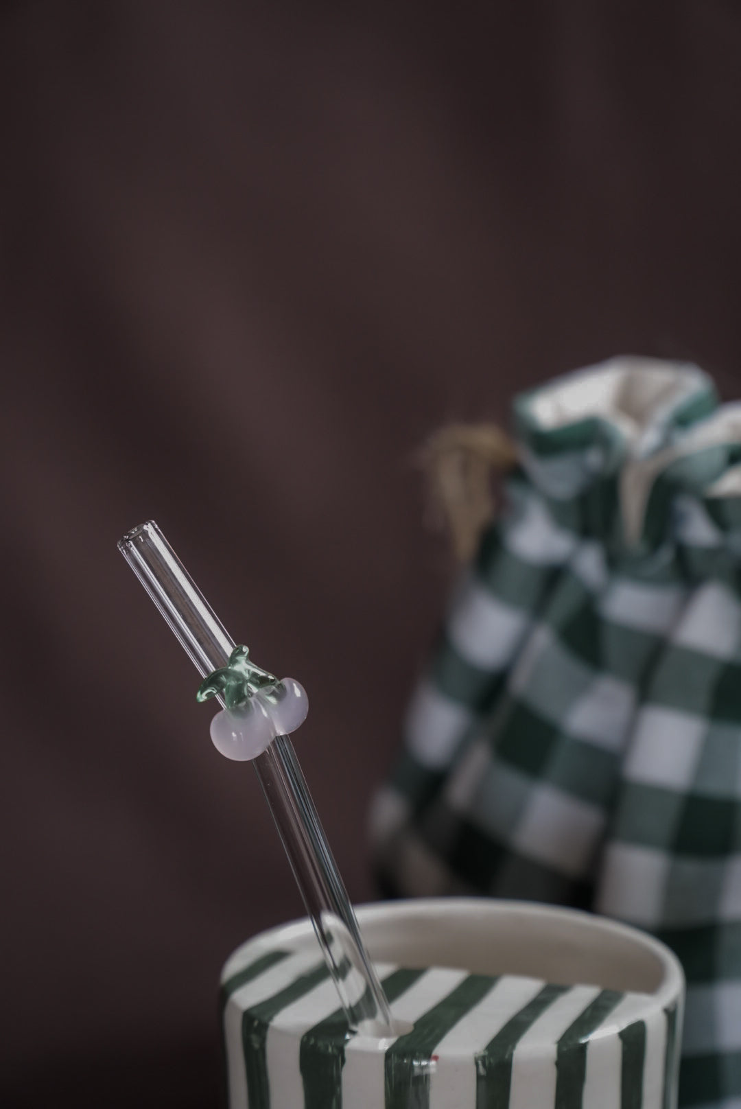 Chaque set inclut une paille en verre soufflé, délicatement décorée d’une cerise. Une touche ludique qui incarne l’esprit de la collection.